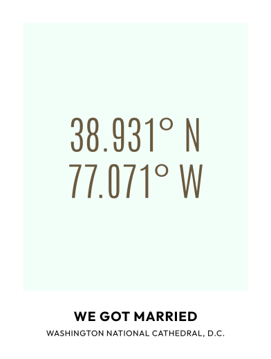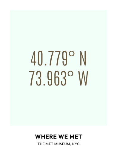 | Coordinates Art | Custom coordinates art that feature the latitude and longitude of a special location, such as the place you got engaged or the location of your first date. |
