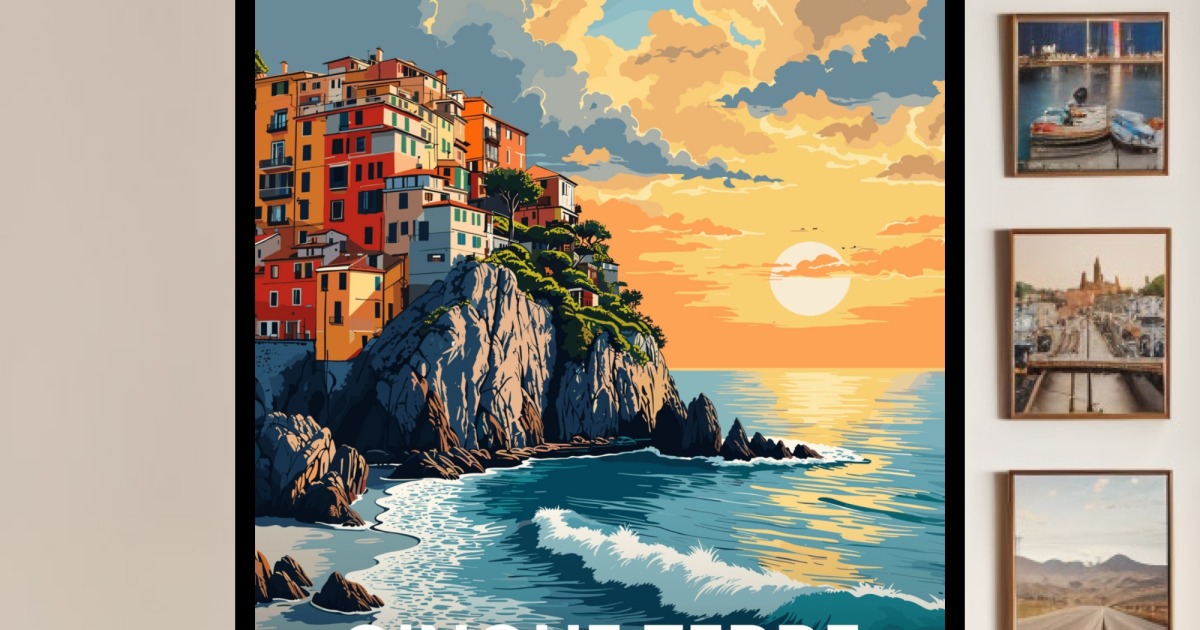 Our Cinque Terre Travel Print - Vintage Travel Art Poster is available in the always ideal Portrait orientation, or it can be fully customized to your liking. Perfect for any space, this work comes in various size options and finishing materials. In fact, your Cinque Terre Travel Print - Vintage Travel Art Poster will have a classic, gallery-quality look when you choose from Matte Poster, Metal Frame, Canvas, Wood Print, and more. Don't hesitate! Give your walls the makeover they deserve!