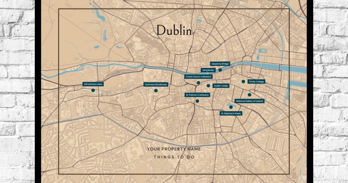 Our Dublin Airbnb Tourist Poster in Road Trip - Street Map is available in the always ideal Landscape orientation, or it can be fully customized to your liking. Perfect for any space, this work comes in various size options and finishing materials. In fact, your Dublin Airbnb Tourist Poster in Road Trip - Street Map will have a classic, gallery-quality look when you choose from Matte Poster, Metal Frame, Canvas, Wood Print, and more. Don't hesitate! Give your walls the makeover they deserve!