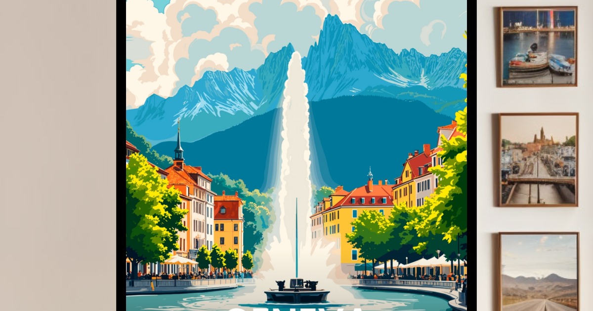Our Geneva Travel Print - Vintage Travel Art Poster is available in the always ideal Portrait orientation, or it can be fully customized to your liking. Perfect for any space, this work comes in various size options and finishing materials. In fact, your Geneva Travel Print - Vintage Travel Art Poster will have a classic, gallery-quality look when you choose from Matte Poster, Metal Frame, Canvas, Wood Print, and more. Don't hesitate! Give your walls the makeover they deserve!