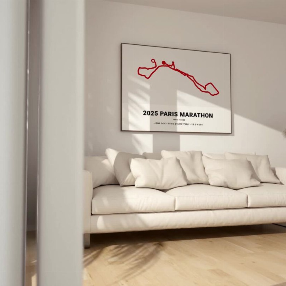 Our Minimalist 2025 Paris Marathon Poster - Route Map is available in the always ideal Landscape orientation, or it can be fully customized to your liking. Perfect for any space, this work comes in various size options and finishing materials. In fact, your Minimalist 2025 Paris Marathon Poster - Route Map will have a classic, gallery-quality look when you choose from Matte Poster, Metal Frame, Canvas, Wood Print, and more. Don't hesitate! Give your walls the makeover they deserve!