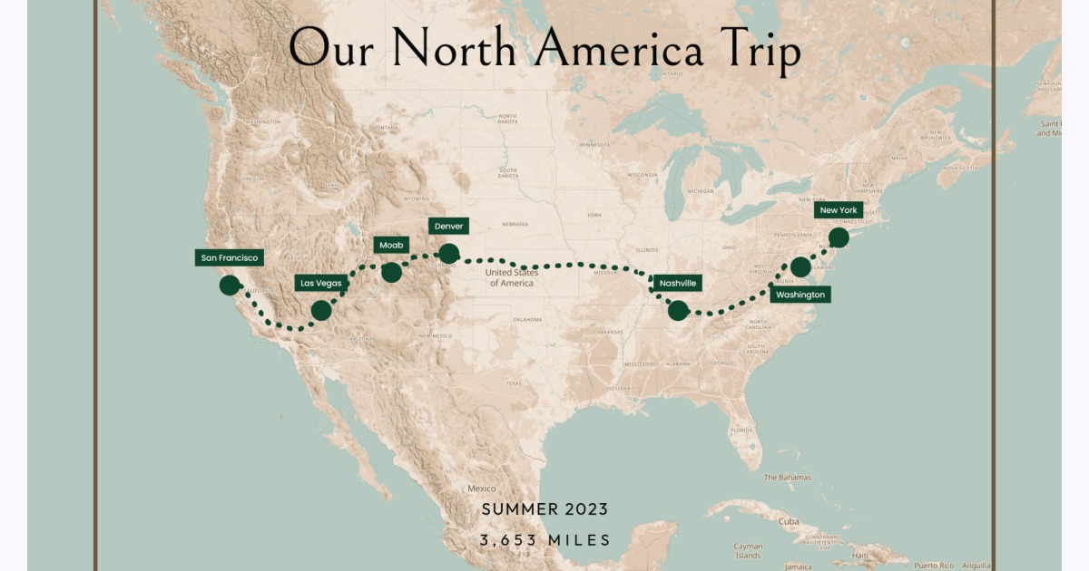 Add a touch of class to your home or office with a Our North America Trip Poster - Route Map, and transform beautiful artwork into a conversation starter in any space. With a Our North America Trip Poster - Route Map from our incredible Regional Trip collection, you're sure to turn heads. As part of our best-selling line of Terrain Map Posters, this piece is a favorite among Couples enthusiasts and an excellent choice for Gifts for Frequent Travelers or Gifts for Friends.