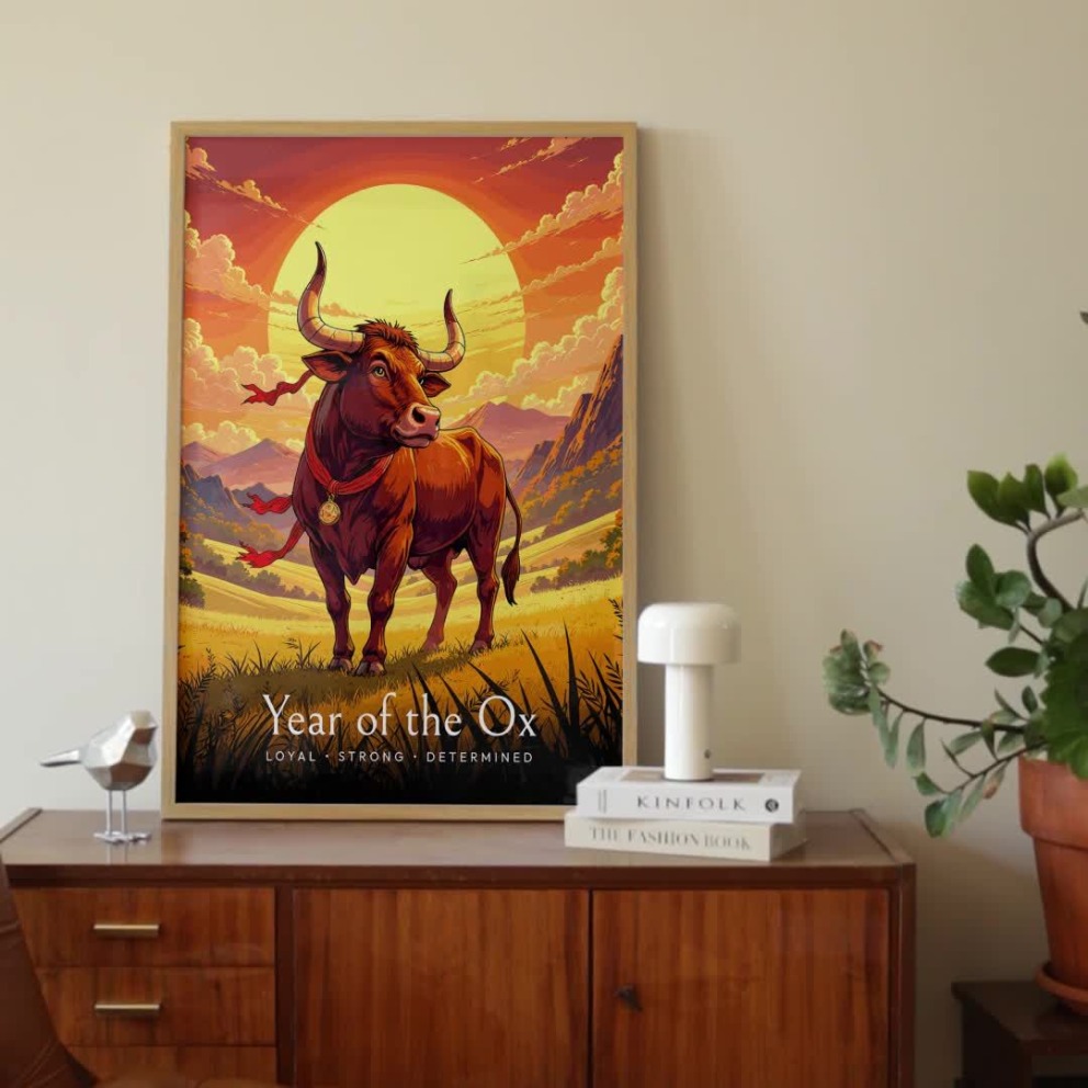 Our Ox in Enchanted Surrealism Print - Custom Chinese Zodiac Poster is available in the always ideal Portrait orientation, or it can be fully customized to your liking. Perfect for any space, this work comes in various size options and finishing materials. In fact, your Ox in Enchanted Surrealism Print - Custom Chinese Zodiac Poster will have a classic, gallery-quality look when you choose from Matte Poster, Metal Frame, Canvas, Wood Print, and more. Don't hesitate! Give your walls the makeover they deserve!