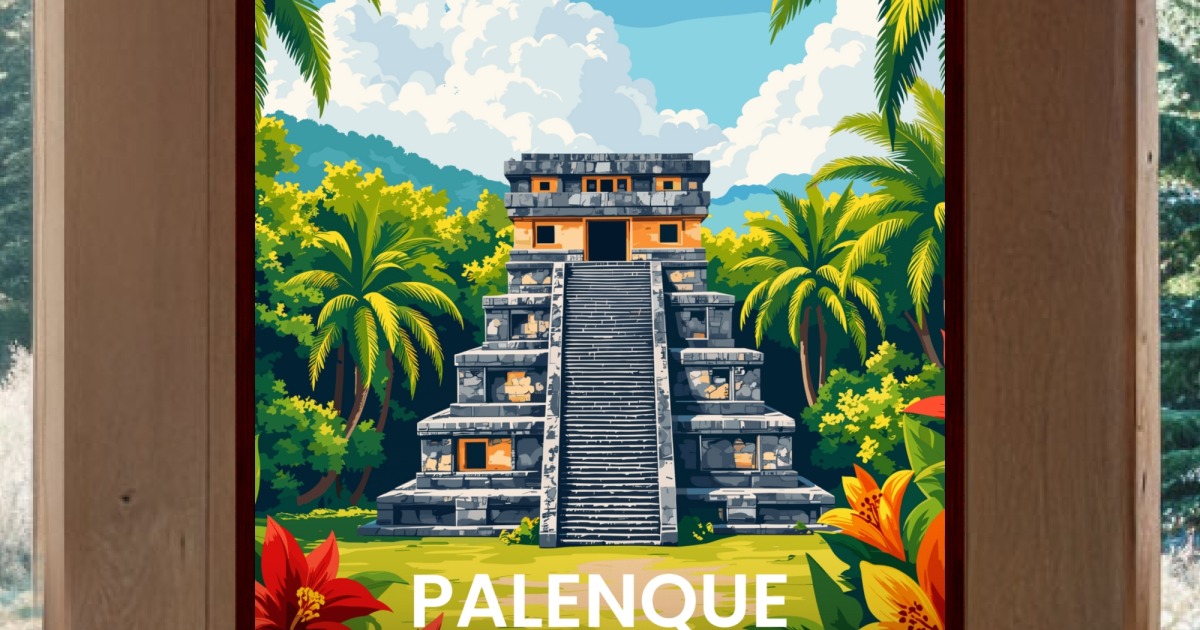 Our Palenque National Park Travel Print - Vintage Travel Art Poster is available in the always ideal Portrait orientation, or it can be fully customized to your liking. Perfect for any space, this work comes in various size options and finishing materials. In fact, your Palenque National Park Travel Print - Vintage Travel Art Poster will have a classic, gallery-quality look when you choose from Matte Poster, Metal Frame, Canvas, Wood Print, and more. Don't hesitate! Give your walls the makeover they deserve!