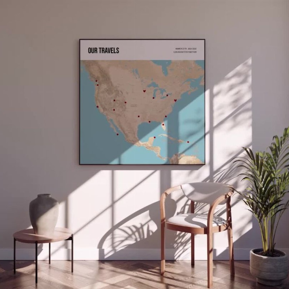 Our The Places We Have Been Together Poster - Terrain Map is available in the always ideal Square orientation, or it can be fully customized to your liking. Perfect for any space, this work comes in various size options and finishing materials. In fact, your The Places We Have Been Together Poster - Terrain Map will have a classic, gallery-quality look when you choose from Matte Poster, Metal Frame, Canvas, Wood Print, and more. Don't hesitate! Give your walls the makeover they deserve!