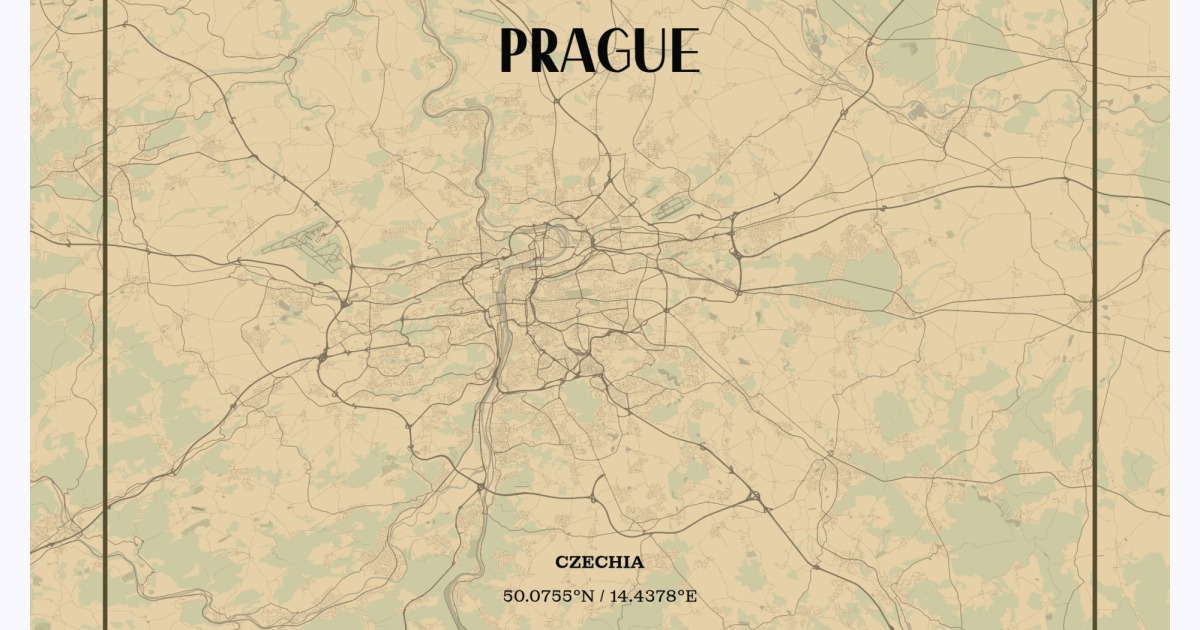 Prague in Vintage Poster - Street Map