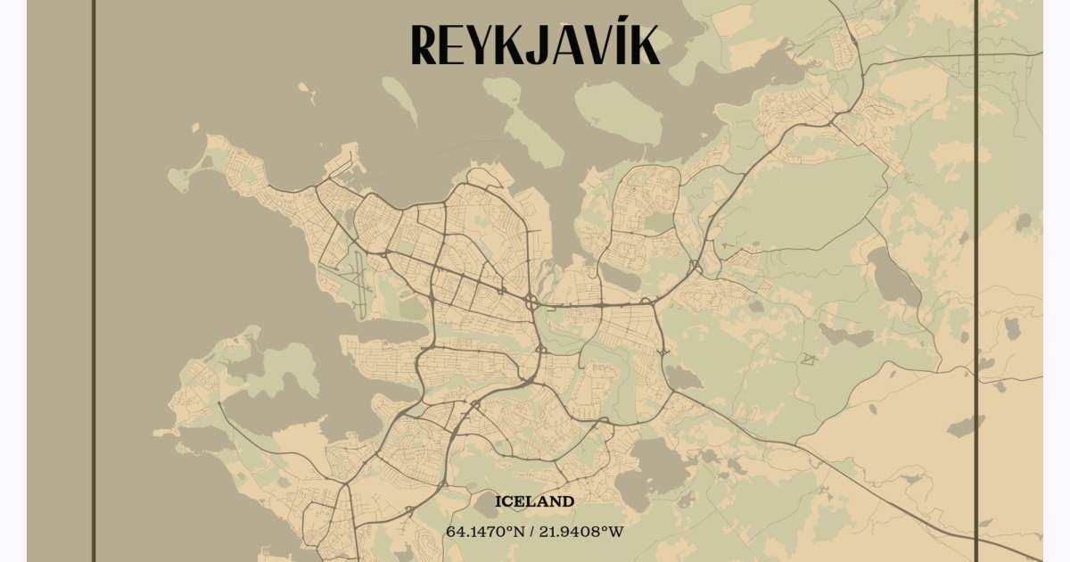 Reykjavik in Vintage Poster - Street Map