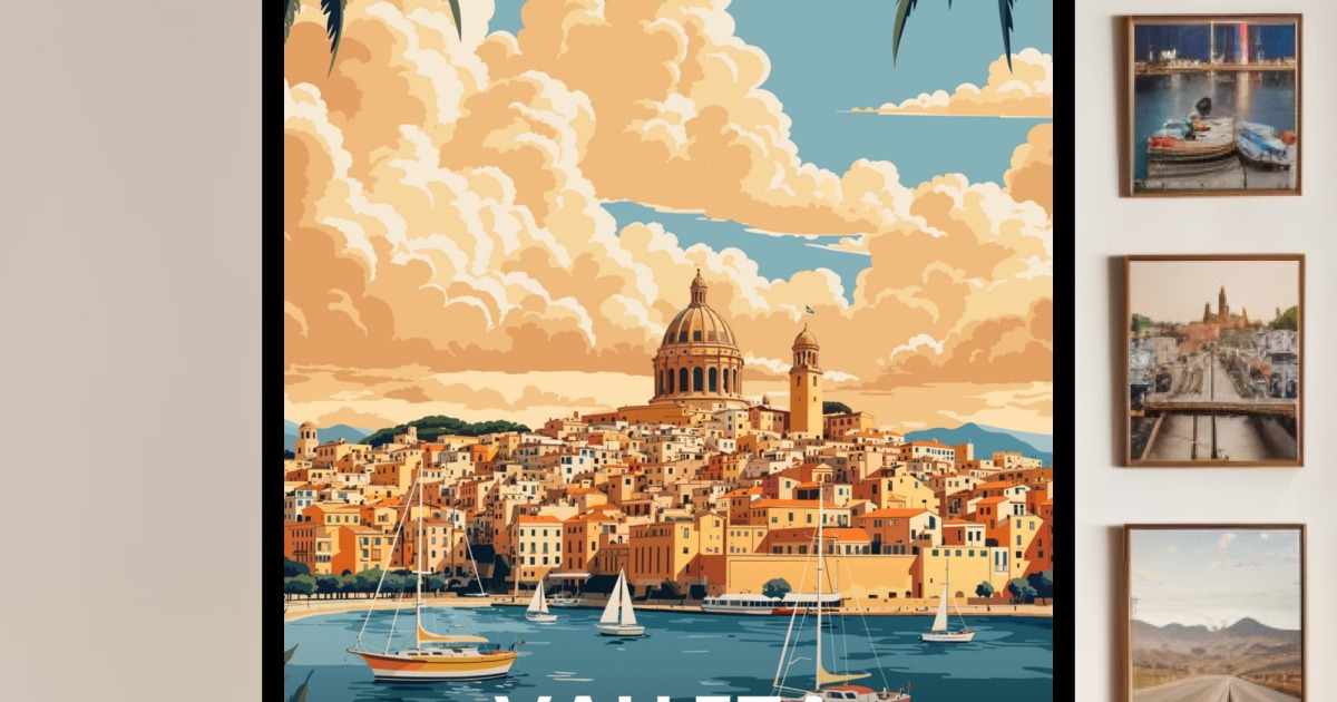 Our Valleta Travel Print - Vintage Travel Art Poster is available in the always ideal Portrait orientation, or it can be fully customized to your liking. Perfect for any space, this work comes in various size options and finishing materials. In fact, your Valleta Travel Print - Vintage Travel Art Poster will have a classic, gallery-quality look when you choose from Matte Poster, Metal Frame, Canvas, Wood Print, and more. Don't hesitate! Give your walls the makeover they deserve!