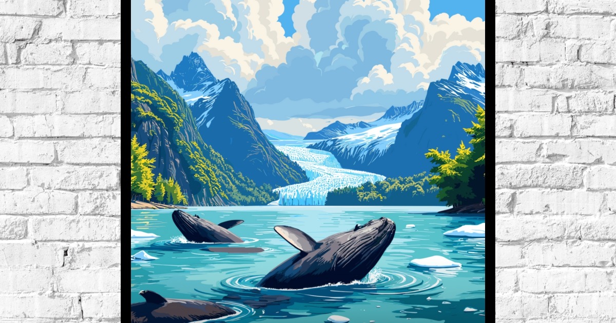 Whale Watching in Alaska Travel Print - Vintage Travel Art Poster