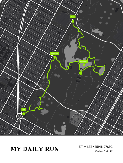 • Walking Course Posters: Unique posters that commemorate your favorite trails, showcasing custom street maps and coordinates art to represent the paths you've explored and the beautiful landscapes you've encountered.