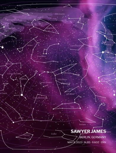 My son was born healthy six months ago despite the doctors' bad outlooks. My wife always says she thanks her lucky stars for smiling upon us the day he was born, so I decided to get her a map of the sky over the hospital the night our son was born. She loved it so much she even cried. Definitely recommend!